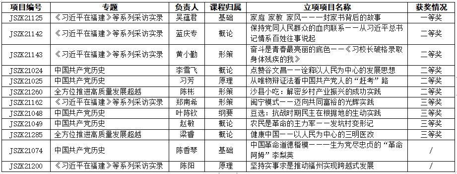 根据《中共福建省委教育工委关于公布“三个百堂”高校思想政治理论课精品课遴选结果的通知》文件精神,开云共有12个教育教学改革精品项目立项,其中一等奖1个、二等奖5个,三等奖4个。