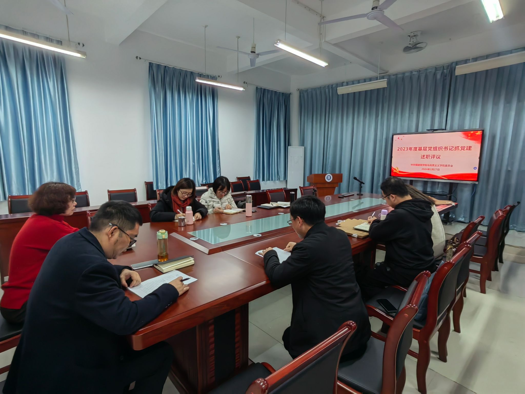 2月27日下午,kaiyun开云官方网站党委在诚信楼五楼会议室召开2023年度党支部书记抓基层党建述职评议会议。学院党委委员、各党支部书记及其支委委员参加会议。会议由院党委书记林萍主持。