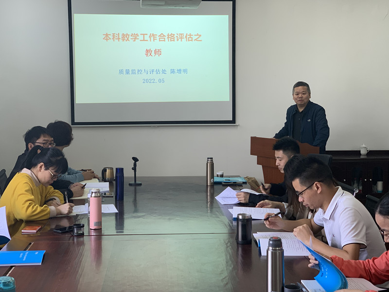 为做好本科教学工作合格评估自评自建工作, 5月3日上午校质量监控与评估处陈增明处长到kaiyun开云官方网站开展合格评估专项培训。kaiyun开云官方网站全体教师参加。