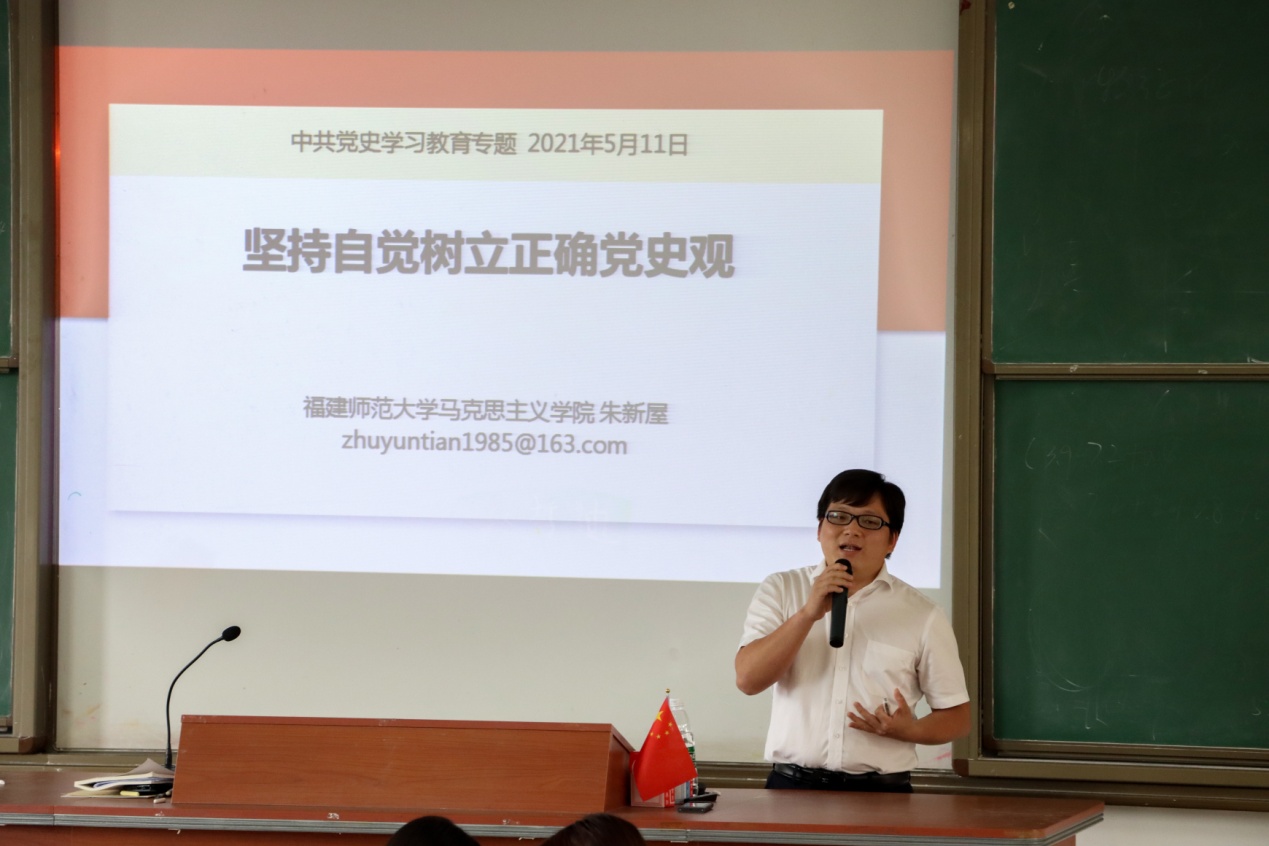 5月11日下午,马克思主义理论大讲堂邀请党史学习教育省委宣讲团成员朱新屋老师到开云作题为“坚持自觉树立正确党史观”的专题讲座。kaiyun开云官方网站全体教师、大讲堂成员,统战部、规划处、国资处支部党员到场听取报告。