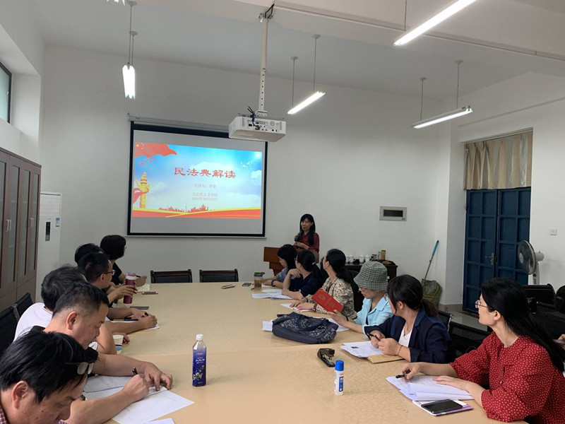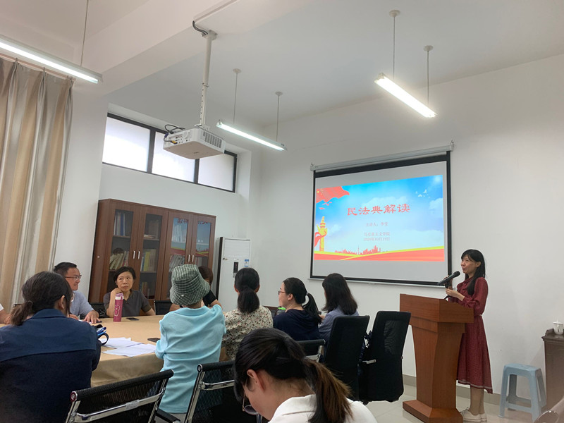2020年10月13日下午,kaiyun开云官方网站直属党支部在院部会议室召开了《中华人民共和国民法典》的学习活动,马院副教授李莹老师做了题为《民法典解读》的主题讲座。讲座由林萍书记支持,马院全体党员教师聆听了这场讲座。