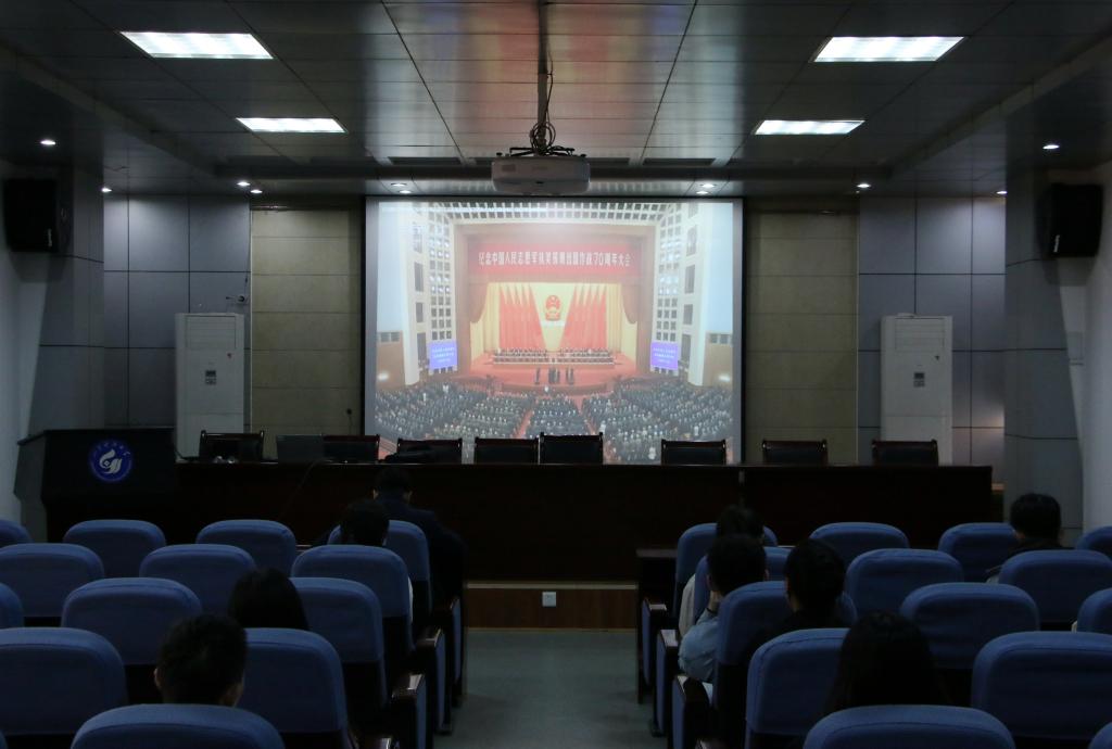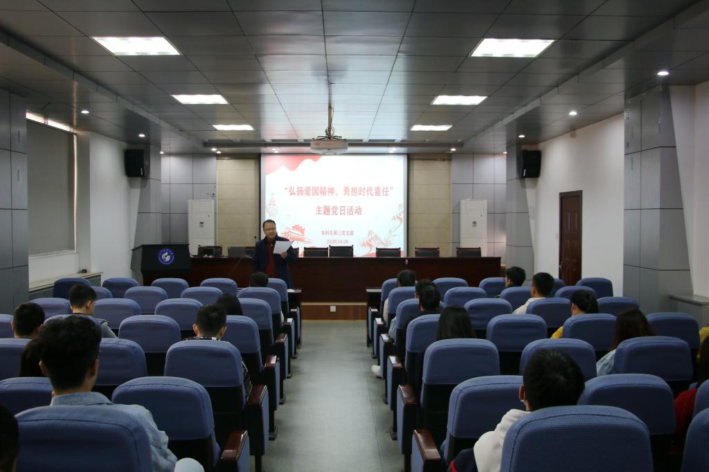 在中国人民志愿军抗美援朝出国作战70周年之际,为了铭记历史,致敬英雄,深化“四史”学习教育,10月28日下午,beat365英国官方网站本科生第三党支部在J15-219报告厅开展了“弘扬爱国精神,勇担时代重任”主题党日活动,全体党员参加。