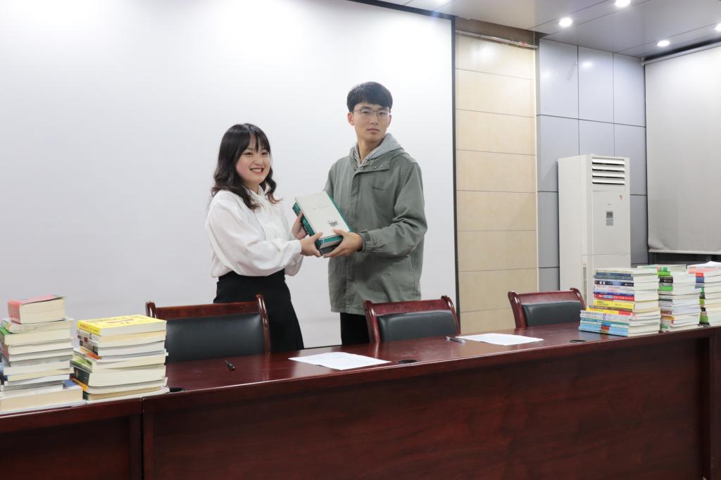 活动伊始,宋西路宣读倡议书,号召教职工党员及学生党员们携手努力,积极地参与捐书活动,为贫困地区的孩子们捐赠更多梦想的书籍、希望的书籍。随后,宋西路带头捐赠出自己的书籍,并在明信片上为贫困地区的孩子们写下殷切期望。党员们纷纷献出爱心,将自己平时闲置的图书奉献出来,依次登记备注,并为孩子们留下充满祝福的寄语。工作人员将捐赠的书籍进行了分类整理,并进行统计,共收到各类书籍共114本。最后,本科三支部优秀党员代表陈子璇与“燃梦公益”负责人进行了图书交接仪式,“燃梦公益”将会把所得书籍全部捐赠给贫困地区的目标小学。