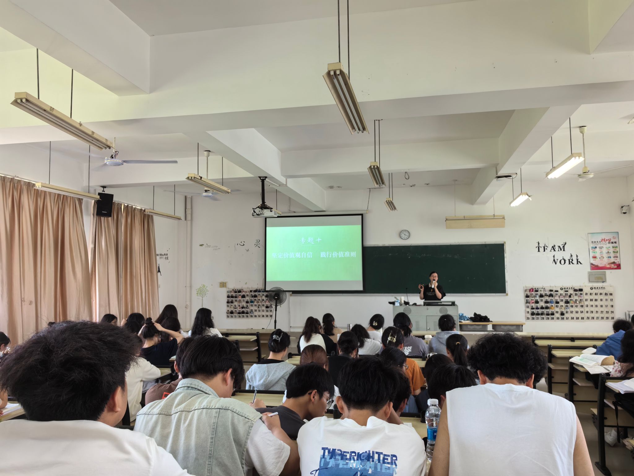 4月15日上午,kaiyun开云官方网站思想道德与法治教研室蓝福秀老师以“坚定价值观自信 践行价值准则”为主题,在马尾校区至善楼楼T3教室开展本学期公开示范课教学,近110名师生参与观摩。