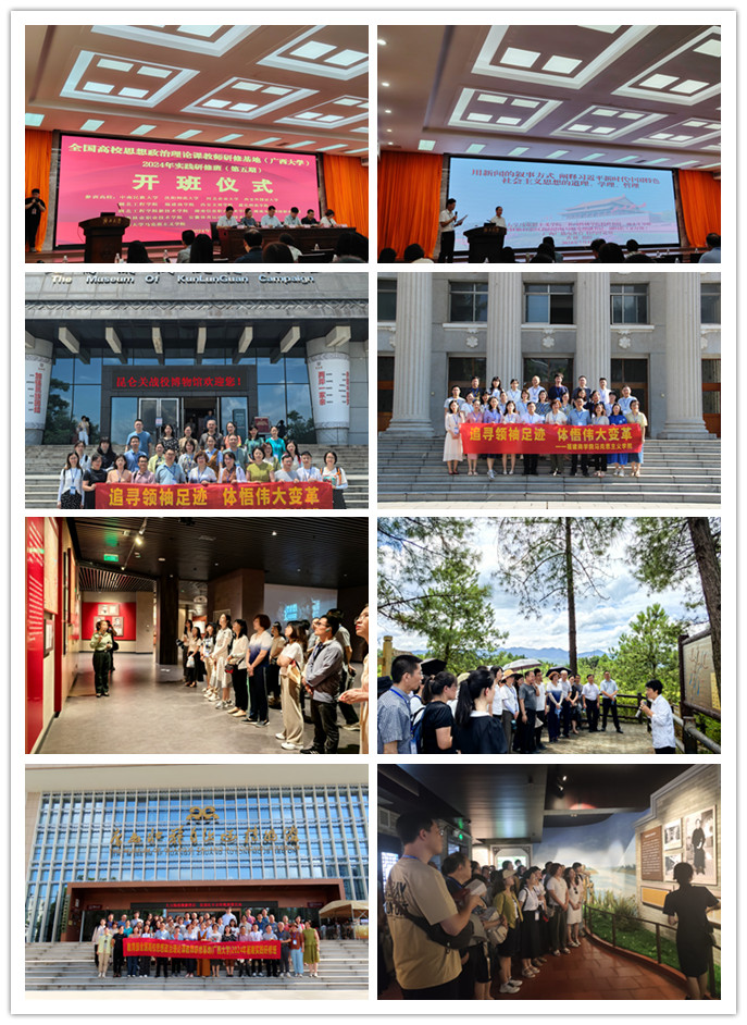 为深入学习贯彻习近平总书记对学校思政课建设作出的重要指示精神,全面贯彻党的教育方针,落实立德树人根本任务,紧扣新时代新征程教育使命,不断开创新时代思政教育新局面,7月15日开云思政课教师前往位于广西壮族自治区首府南宁市的广西大学参加高校思想政治理论课教师实践研修班。