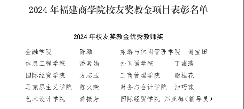 9月19日下午,开云在连江校区学生活动中心召开庆祝第40个教师节暨表彰大会。开云陈火荣老师获得2024年校友奖教金优秀教师荣誉表彰,陈翠老师作为2024年福建省第七届高校青年教师教学竞赛一等奖获得者获得表彰。