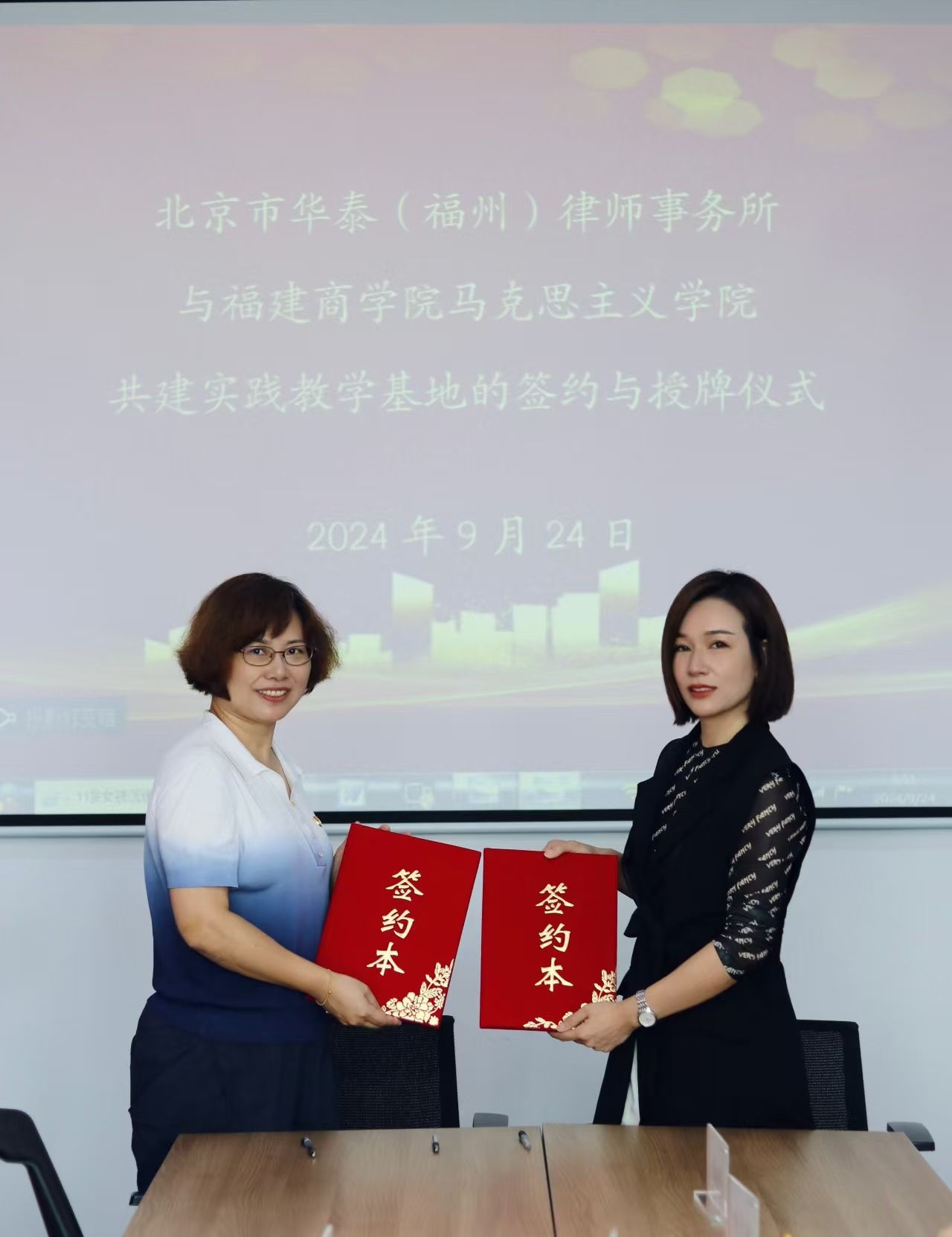 为深入贯彻落实习近平总书记关于“大思政课”的重要指示批示精神,按照教育部关于开展高校与“大思政课”实践教学基地结对行动的部署要求,9月24日上午,开云与北京市华泰(福州)律师事务所共建“大思政课”实践教学基地签约揭牌仪式在北京市华泰(福州)律师事务所举行。律所执行主任方云香、执行副主任兼党务负责人张江波、开云党委书记、院长林萍及律所高级合伙人、部分老师参加仪式。