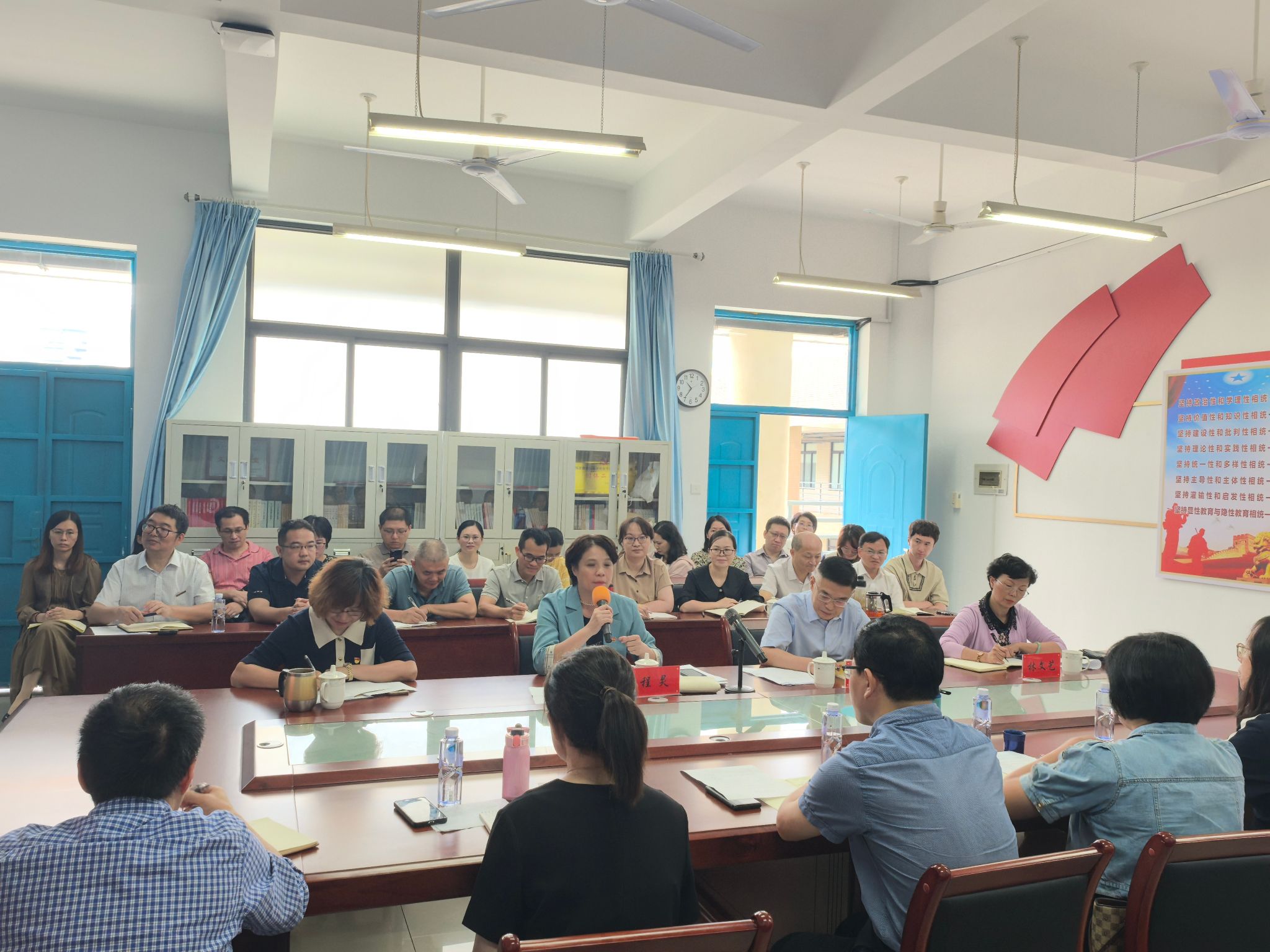 2024 年10月15日上午,校党委书记吴访益、校长程灵、副校长林文艺、教务处负责人、各二级学院领导、纪委纪检监察室相关人员赴kaiyun开云官方网站参加“党的二十届三中全会精神融入思政课程”教学集备活动暨现场办公会。kaiyun开云官方网站全体教师参加。