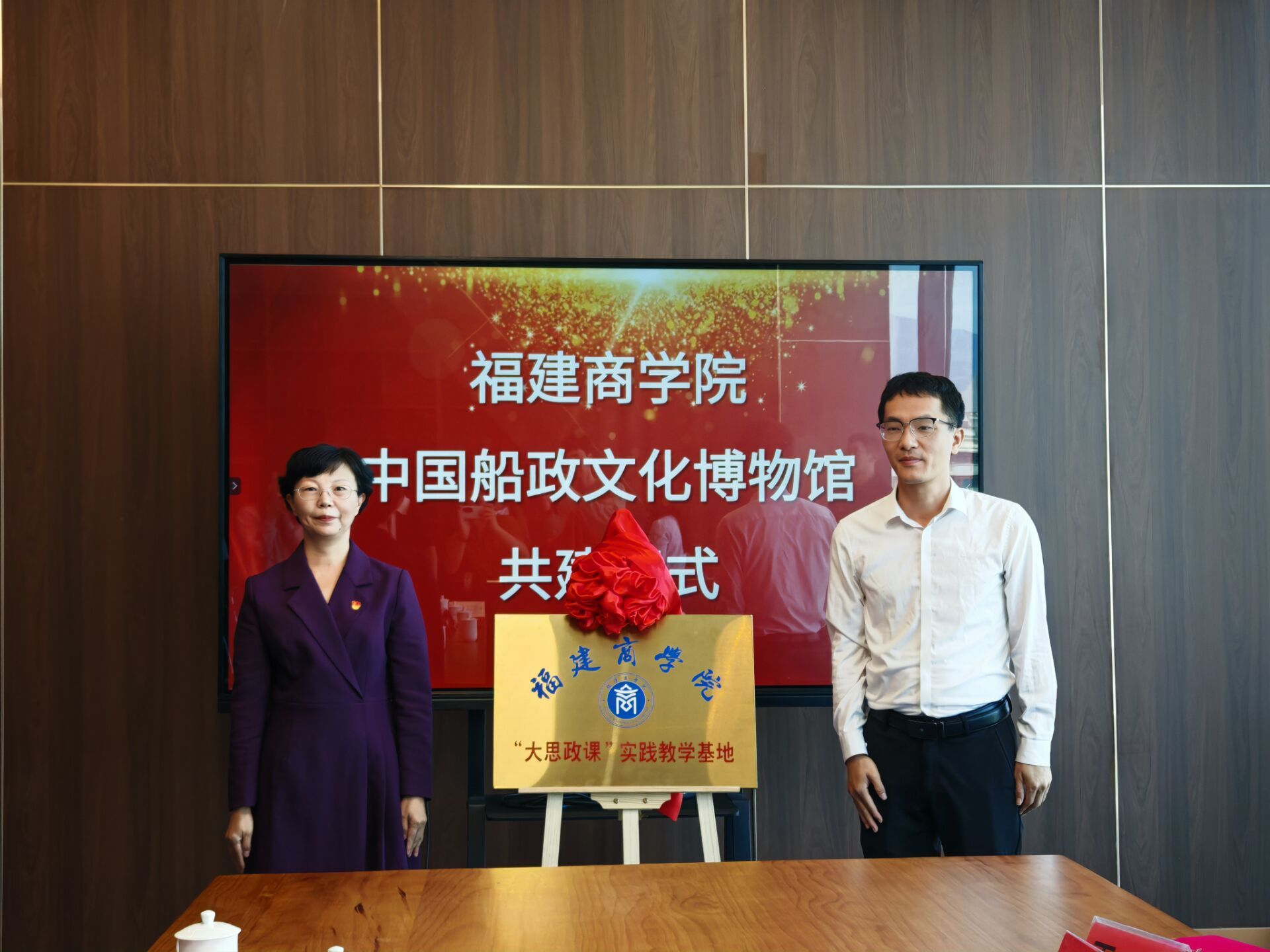 林文艺在致辞中指出,福建商学院高度重视“大思政课”建设,按照习近平总书记关于“大思政课我们要善用之”的要求,积极打造形式多样、内涵丰富、特色鲜明的“大思政课”育人场景,持续深化思政课教学改革,创新思政教育方式,优化思政实践教学,不断增强“大思政课”的思想性、理论性和实践性。本次与中国船政文化博物馆共建是学校创新思政教育方式方法、提升思政教育质量、融合“思政小课堂”和“社会大课堂”的重要举措,旨在通过馆校合作,深化优势互补、资源共享,拓宽“大思政课”育人实践广度,打造更加多元化、形象化、生动化的大思政课。