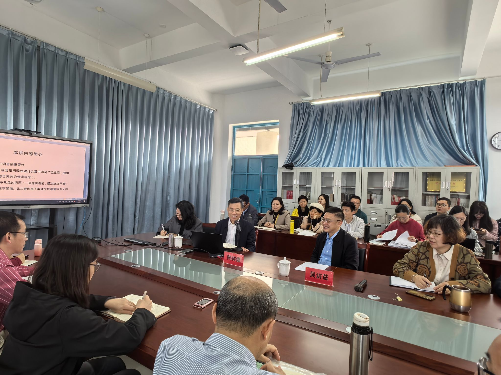 陈祥健以“文件语言”的重要性为切入点,以党的二十届三中全会《决定》为例,解构分析“文件语言”在公文中的基本特征和逻辑建构,并结合自身的写作经验,系统讲解“文件语言”在阐释性理论文章的逻辑结构、表述方式、语言特点等,为与会人员更好理解和运用“文件语言”提供了精准指导。