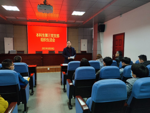 为深入学习贯彻习近平新时代中国特色社会主义思想,学习贯彻党的十九届五中全会精神,进一步提升基层党组织的政治功能和组织力,加强党员理想信念教育,提升党员政治素质、理论水平和党性修养,3月19日,beat365英国官方网站本科生第三党支部召开组织生活会,支部全体党员参会,学院党委书记宋西路到会指导。会议由本科生第三党支部书记朱统汉主持。