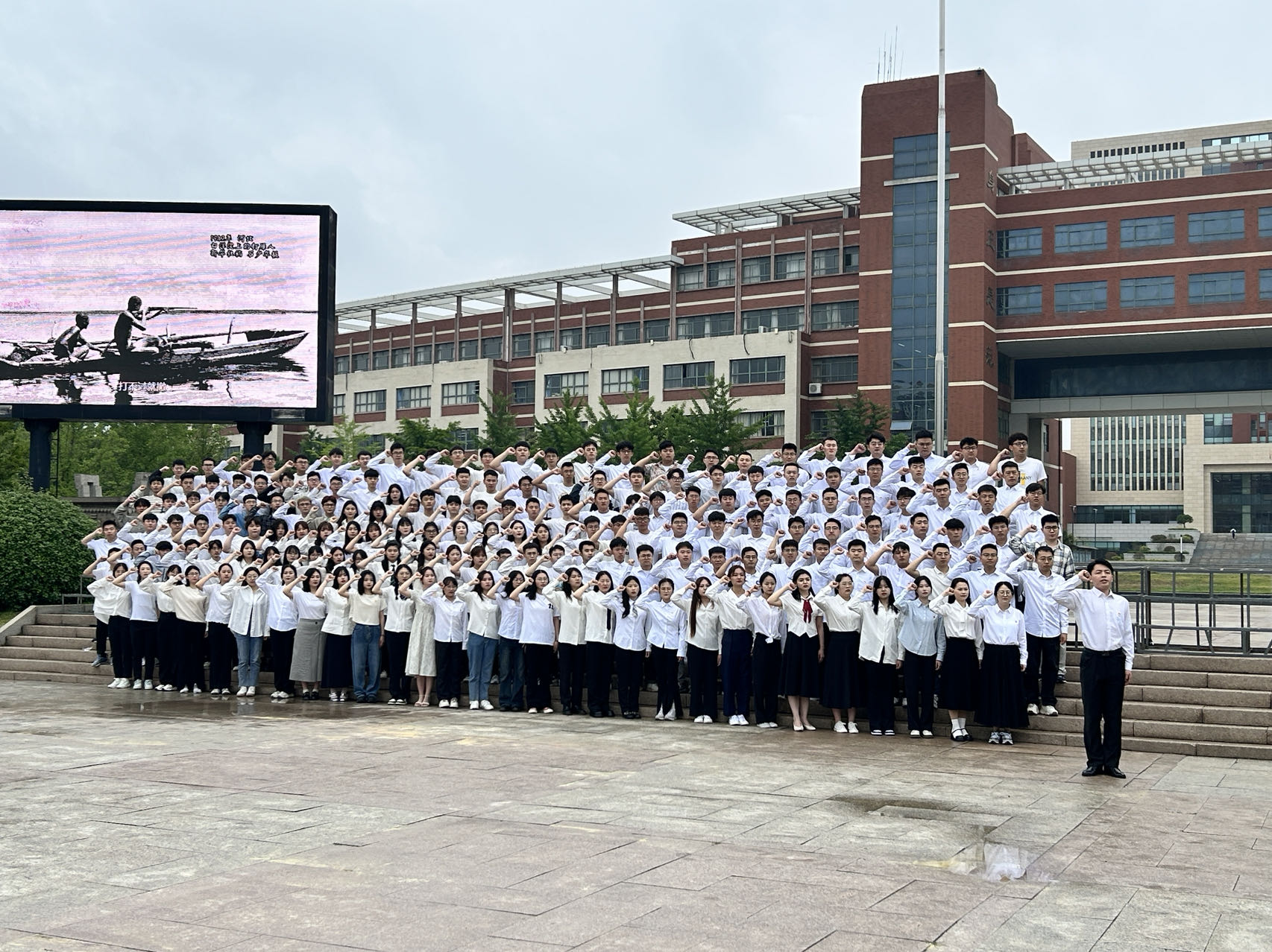 在学生党员王祺全的领誓下,全体毕业生党员举起右手,面对鲜红的党旗,重温入党时的决心和理想。全体成员热情饱满、斗志昂扬,有力的表达着作为共产党员的自豪感与使命感,抒发对党忠诚的意志和信念。毕业生党员们在铮铮誓言下,坚定理想信念,牢记职责使命,重拾入党初心。