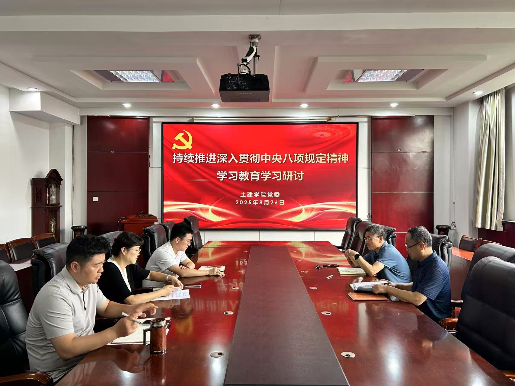 8月26日,beat365英国官方网站党委开展持续推进深入贯彻中央八项规定精神学习教育学习研讨,深入学习贯彻习近平总书记关于加强党的作风建设的重要论述和中央八项规定及其实施细则精神,通过交流互鉴进一步深化思想认识、强化行动自觉,推动学院上下以更严标准、更实举措贯彻落实中央八项规定精神,持续巩固风清气正的政治生态。学院党委书记宋西路主持会议,在家领导班子成员参加会议。