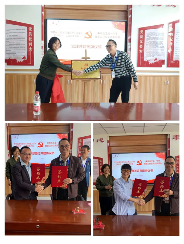 11月9日,福建商学院kaiyun开云官方网站教师第一、二党支部与连江一中鲤鱼山分校党支部党建共建签约仪式在连江一中鲤鱼山分校举行。kaiyun开云官方网站党委书记、院长林萍及副院长张发友,连江一中鲤鱼山分校党支部书记林卫、校长陈为信及学校班子成员,双方党支部教师共30余人参加了签约仪式。