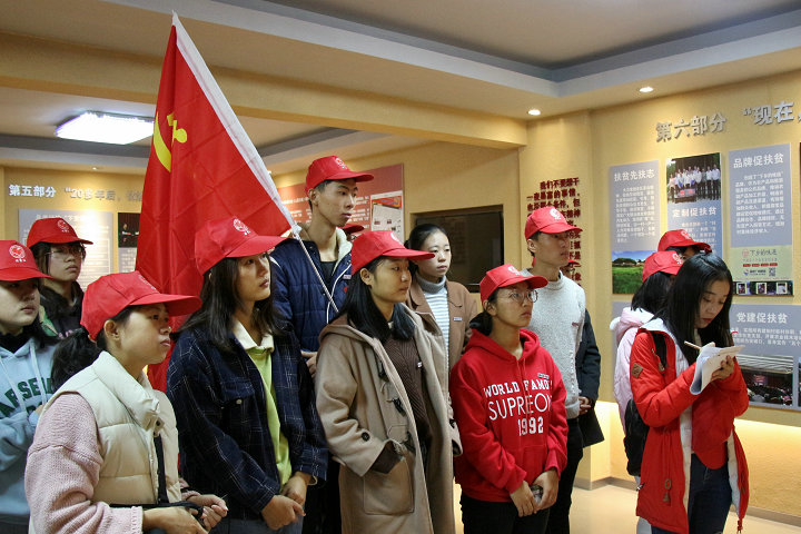在考察学习过程中,党员师生们重温入党誓词,并开展实践学习现场交流座谈。在座谈中,刘剑津书记对同学们提出了四点要求:一要多投身实践。“纸上得来终觉浅,事非经过不知难”,实践出真知,青年大学生要走出校园,多接触社会,多开展实践考察,及时更新知识,丰富经验,做到“知行合一”。二要多坚持锻炼。青年大学生要按教育部提出的“走下网络、走出宿舍、走向操场”要求,充分认识到强健身体和充实大脑一样重要,在学习之余,更多地走地向运动场,坚持体育锻炼,做德智体美劳全面发展的社会主义建设者和接班人。三要坚持人民立场。习近平总书记“三进下党”体现了中国共产党始终以人民为中心,青年大学生要自觉树立和坚持以人民为中心的理念,“先天下之忧而忧,后天下之乐而乐”,勤奋学习,掌握过硬本领,服务社会,服务人民。四要有家国情怀。青年大学生要做到“风声雨声读书声,声声入耳;家事国事天下事,事事关心”,自觉把个人融入时代,把人生坐标和奋斗理想定位在建设美丽家乡和美丽中国上,胸怀家国天下,并为之奋斗不息。