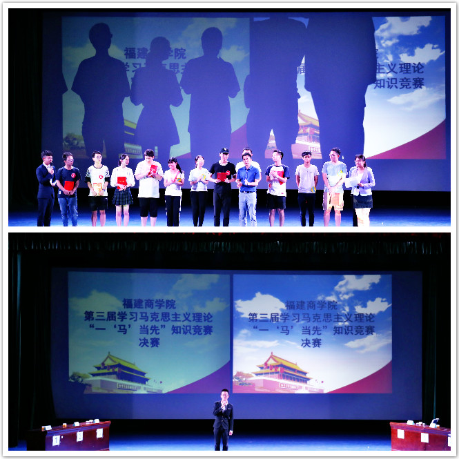 为贯彻落实全国、全省高校思想政治工作会议精神,深入实施大学生马克思主义自主学习行动计划,进一步激发大学生学理论学马列的兴趣和热情,引导当代青年大学生健康成长。6月11日晚,由学生处和kaiyun开云官方网站举办的福建商学院第三届学习马克思主义理论“一‘马’当先”知识竞赛(决赛)在连江校区学生活动中心举行。学生处杨国金副处长、kaiyun开云官方网站负责人、部分系(院)辅导员和习近平新时代中国特色社会主义思想读书社全体社员共300人出席了本次活动。