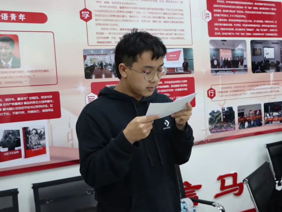 为进一步深入学习中国共产党百年奋斗重大成就和历史经验,深刻感受中国共产党人在中华民族伟大复兴征程中体现出的爱国情怀、高尚品格和精神风骨,汲取奋进力量,校习近平新时代中国特色社会主义思想读书社于2021年11月16日晚在连江校区自强楼114活动室开展读书沙龙活动。kaiyun开云官方网站陈阳老师、叶陈钦老师以及读书社第五小组全体社员共40多人参加此次活动。活动由叶陈钦老师主持。