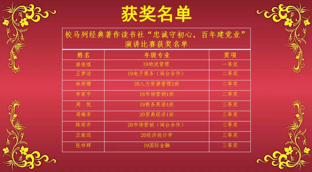 2021年是中国共产党建党100周年,在这特殊的历史节点,为向党的一百岁生日献礼,同时也为坚定大学生不忘初心跟党走的信念,开云马列经典著作读书社于2021年4月21日晚19:30在马尾校区非洲厅举办“忠诚守初心,百年建党业”主题演讲比赛,kaiyun开云官方网站陈火荣老师、蓝庆专老师应邀担任本次比赛评委。