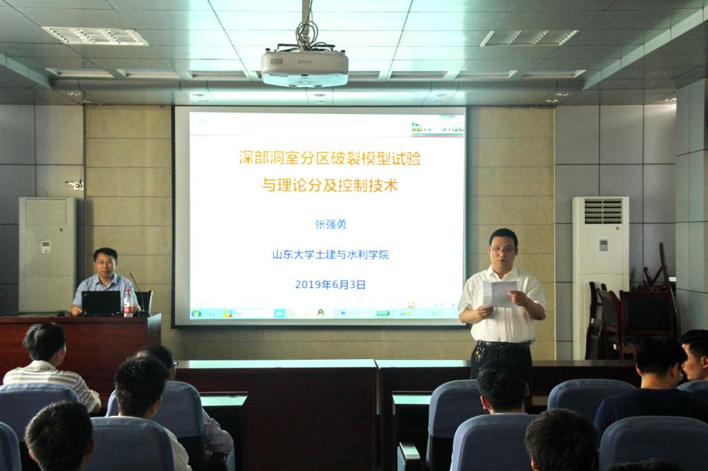 6月3日,beat365英国官方网站邀请到泰山学者特聘专家、教育部新世纪优秀人才支持计划获得者、山东大学土建与水利学院副院长张强勇于土建楼219报告厅作报告,学院副院长张宪堂主持了本期名家讲坛。报告以“深部洞室分区破裂模型试验与理论分析及控制技术”为题,从深部洞室分区破裂模型及工程应用等方面展开讲解。