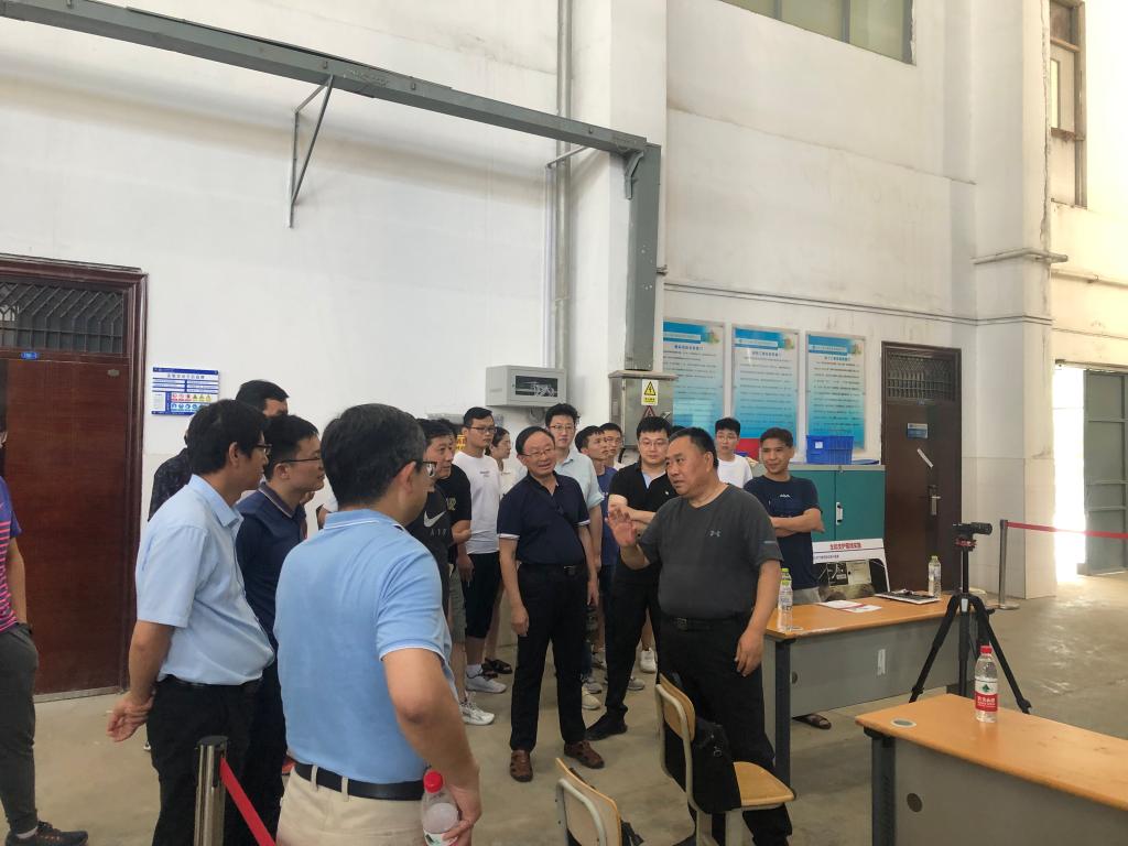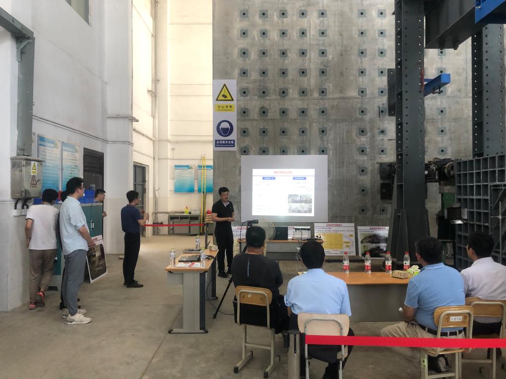 王刚对赵继增一行的到来表示欢迎,对青岛地铁集团的关心支持表示感谢。李为腾、秦哲先后在实验大厅就科研项目背景、模型实验进展及超载实验方案进行了汇报,赵继增对试验加载方式、优势节理面选取等方面进行指导,提出超载试验的相关要求。