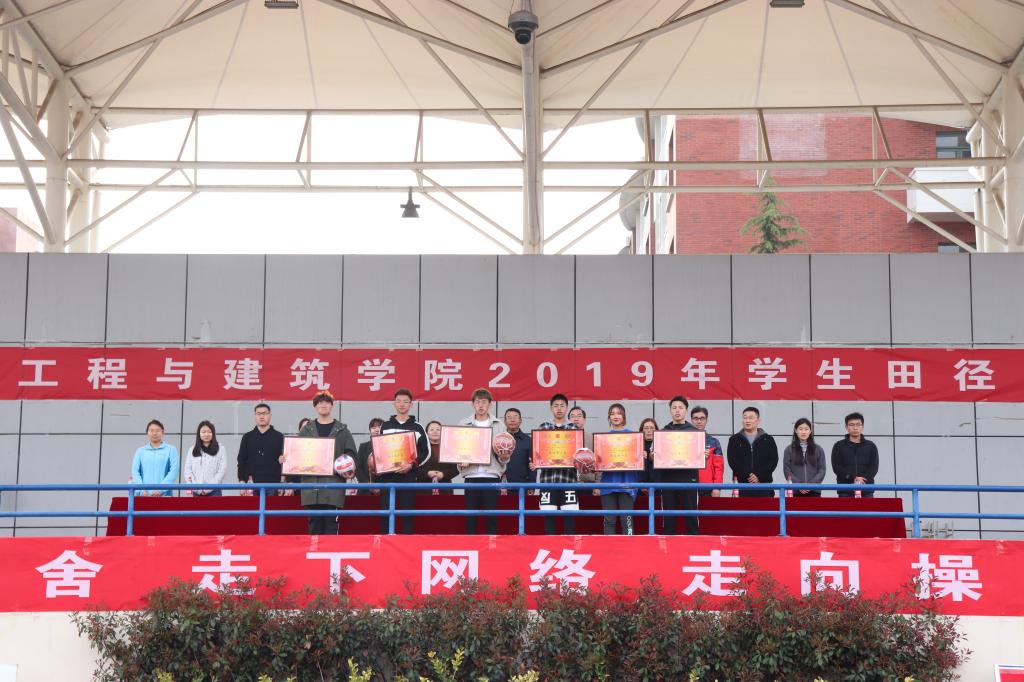 本届运动会中,建筑学2017-2班、工程管理2018-1班分别获得甲、乙组团体总成绩第一名,土木工程2018-1班、土木工程2017-4班、水利水电工程2017级等三个班级获得精神文明奖,建筑学2018-2班、工程管理2017级2班、建筑环境与能源应用工程2018级2班等三个班级获得宣传报道先进班集体。