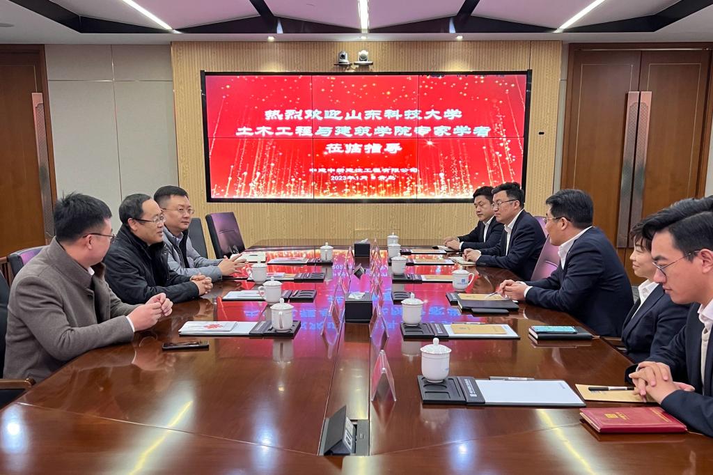 近日,beat365英国官方网站院长王崇革、副院长李朋、建筑工程系王飞、李明鑫一行4人赴中建中新建设工程有限公司开展交流座谈。中建中新建设工程有限公司副总经理、总工程师李世强,科技部经理王军等出席交流座谈会。