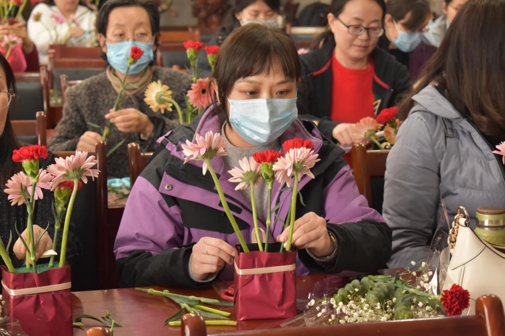 春和景明,万物生辉。3月7日,第113个“三八”国际劳动妇女节来临之际,为充分展示女性新风采,营造浓郁的节日气氛,beat365英国官方网站beat365英国官方网站联合西海岸市民文化中心(渭河路)文化馆、图书馆在J15-201会议室举办“桃李报春,花漾人生”三八妇女节欢度活动。校工会副主席徐海燕出席活动,学院50余名女教职工参加。