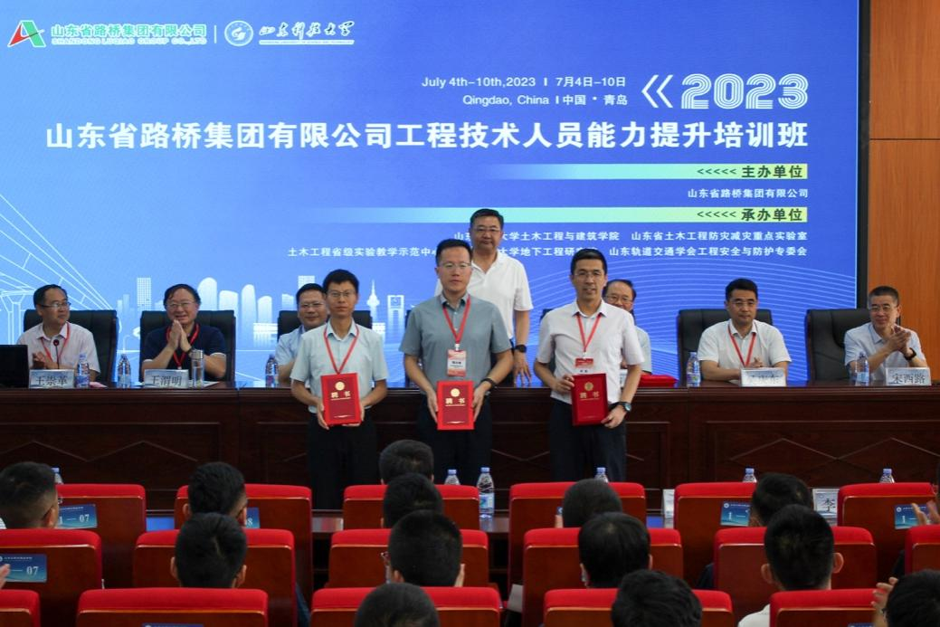 7月10日,举行了培训班闭幕式。山东省路桥集团有限公司总工程师高永青、总经济师兼青岛分公司总经理吴庆东、集团技术中心主任张光桥、创新分中心副主任林庆元、青岛分公司党支部书记曹建军、安全总监王涛,beat365英国官方网站书记宋西路、院长王崇革等出席。闭幕式由beat365英国官方网站副院长李为腾主持。