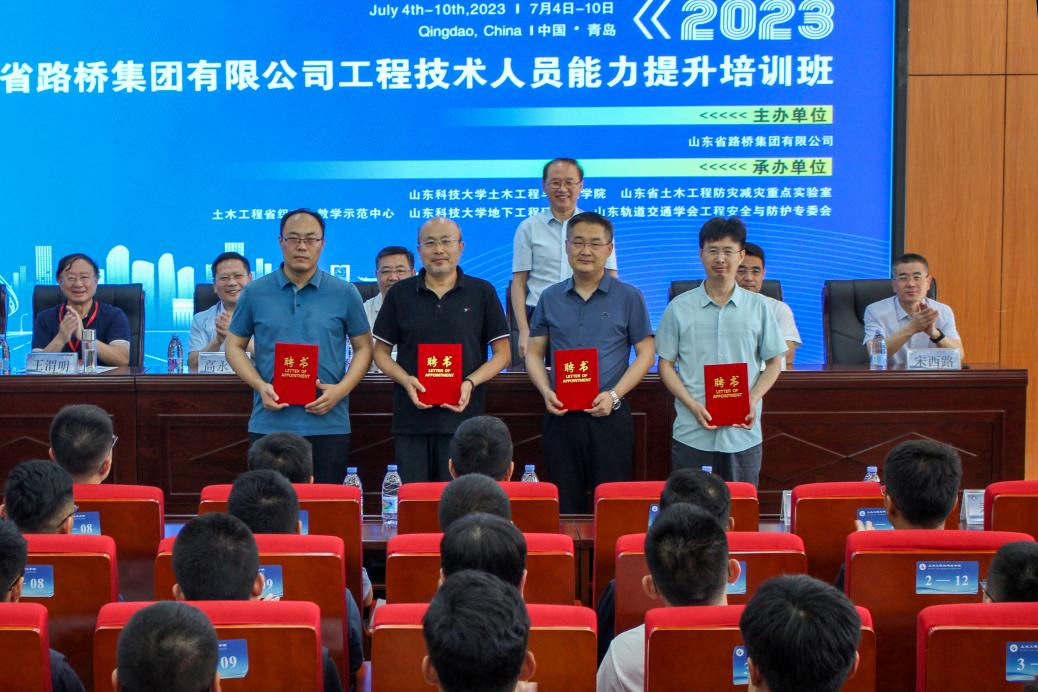 开班仪式上,beat365英国官方网站与山东省路桥集团有限公司举行双方聘任仪式,并颁发聘书。山东省路桥集团有限公司聘任beat365英国官方网站副教授贺鹏为技术中心副主任(兼),聘任教授邓芃、单景松,副教授李松辉为企业导师,beat365英国官方网站聘任山东省路桥集团有限公司党委组织部主任田浩、人力资源部经理魏功槐、技术中心主任张光桥为外聘教授。