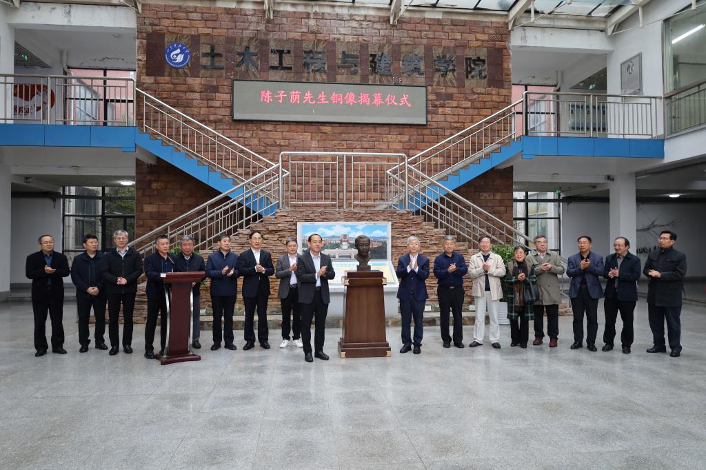 会前,举行了由李术才院士个人名义捐赠的陈子荫先生铜像揭幕仪式。会后,与会专家、校友参观了学院实验室。
