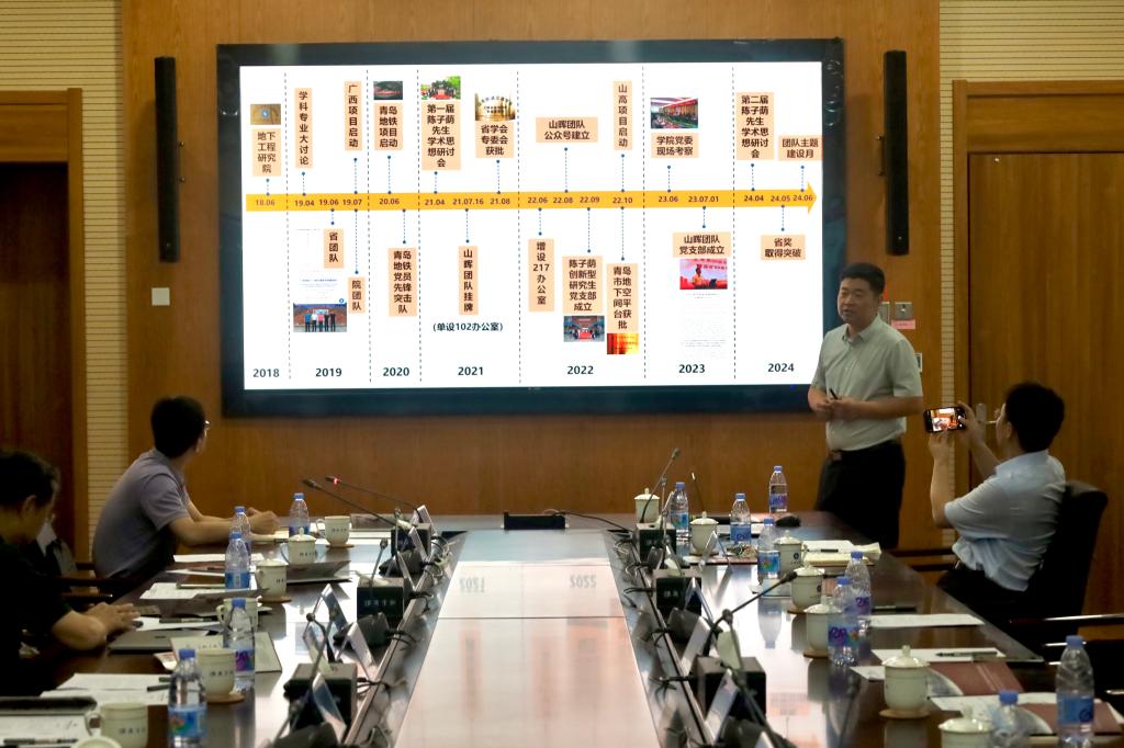 杨旭旭对beat365英国官方网站山晖团队的建设情况做汇报,介绍了团队在党建引领、文化建设、研究成果等方面的发展情况,在青岛地铁、重庆路高架桥、小珠山隧道等地的工程实践情况,他指出,站在新起点,山晖团队将开启新的征程,努力为青岛区域发展做出更多、更大的贡献。
