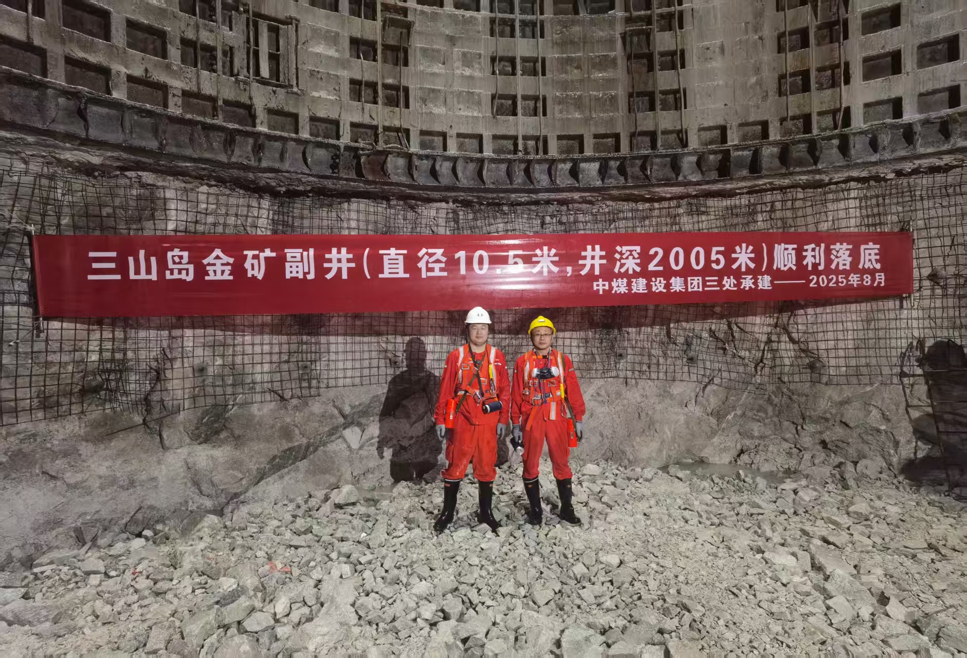 8月14日,亚洲第一深立井——山东黄金三山岛金矿2005m超深副井迎来里程碑式节点,顺利实现落底。beat365英国官方网站副院长秦哲、山晖团队教师韩继欢、实验中心支部书记陈海涛及研究生团队与矿方共同见证了这一标志性时刻,该节点的完成为攻克超深井建设难题积累了宝贵经验。