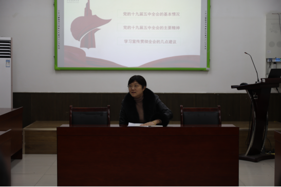 12月8日,beat365英国官方网站党委副书记高静在J15-201为所联系班级----建筑学19-2班宣讲党的十九届五中全会精神,辅导员鲍娜娜主持会议。