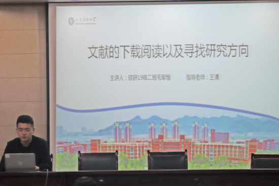 本期讲坛主讲人为beat365英国官方网站2019级硕士研究生毛军恒,主讲题目为《文献的下载阅读以及寻找研究方向》。毛军恒从文献的下载、文献的阅读、研究方向的确定三个方面介绍了研究生在论文下载及撰写过程中可能遇到的问题及解决方法。首先,毛军恒介绍了研究生下载文献的常用网站,并对文献的下载方法进行了详细解说,分享了许多阅读文献的技巧。随后,毛军恒以自身经历为例,为同学们做出了详细的分析,帮助同学们更有目的性的选择自己的研究方向,更快的适应现阶段的学术学习。最后,主讲人与同学们进行了现场答疑,对研究生新生在论文下载及撰写时存在的其他问题进行了补充和解惑,使同学们受益良多。