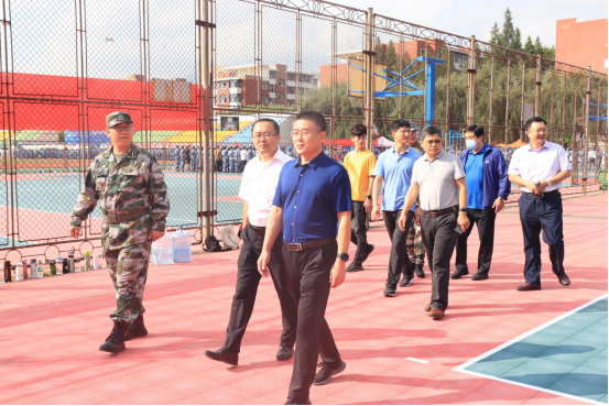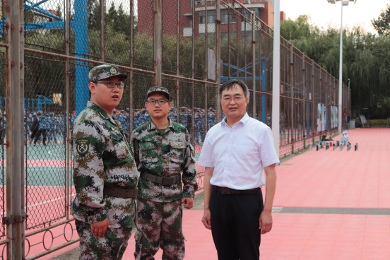 学校党委常委、副校长高建广到学院训练场地,驻足观看了土建五营的训练情况,并对今天的训练计划以及完成情况进行了详细的了解。beat365英国官方网站党委书记宋西路、院长王崇革等学院领导班子到训练场地看望新生,对他们刻苦训练的精神给予了肯定,并鼓励新生们再接再厉,以饱满的热情迎接接下来的训练。