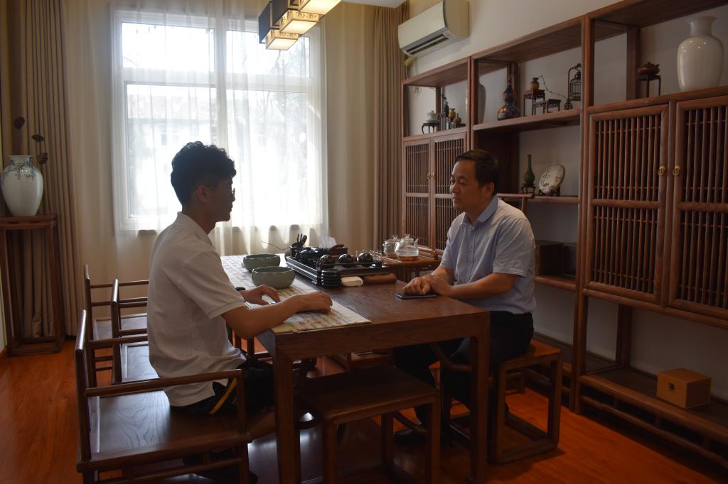 在对单德勇和尹红梅的采访中,单德勇简单的叙述了他毕业后努力拼搏、积极创业的奋斗历程。他说:“学习是一件终身都需要做的事情,读大学的时候要努力学习,工作后更要不断地、持之以恒地学习”。谈到创业历程,他强调厚积薄发的重要性,学习和工作要脚踏实地,勤勤恳恳,慢慢积累。提及难忘的在校生涯,两位校友双眼瞬间绽放出神采。单德勇曾是体育部部长,组织并参与了学校多次的足球比赛,他向我们讲述了足球场上惊心动魄的比赛,所有球员团结一致,奋勇拼搏,努力为学院争夺荣誉。时至今日,曾经的场景仍历历在目,难以忘怀。尹红梅是学院建设者杂志的主编,参与了多期杂志的编辑工作。建设者工作站传承至今,仍在学院榜样示范引领中发挥着重要作用。尹红梅回忆起做主编的日子,笑容满面。她提起同学们踊跃投稿,文学散文、小说、诗歌、论文等等,应有尽有,百花齐放,做主编的日子充实又快乐。