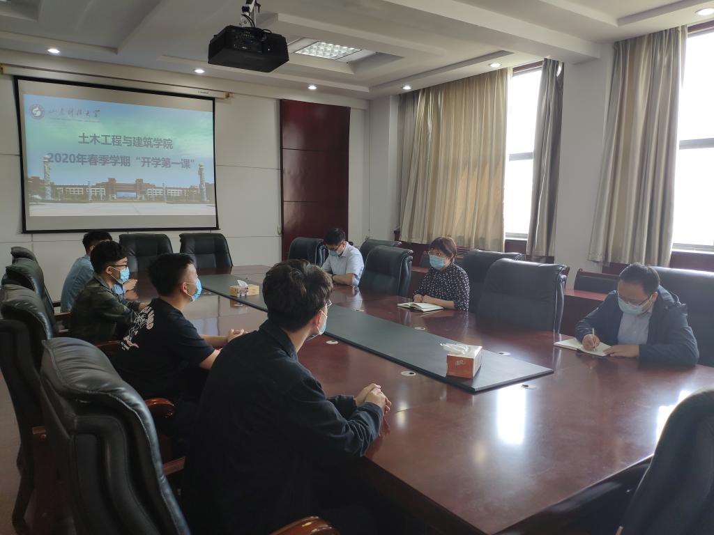 5月26日,学院党委副书记高静、团委书记朱统汉、辅导员王贝贝与返校的4名本科毕业生共同观看了《山科战“疫”-新冠肺炎疫情防控知识应知应会》、《新课堂——同心战“疫”特别节目》、《返校后心理调节小课程》、《开学第一课》(高校版)山东省战疫特别节目等学习视频,学习了《beat365英国官方网站新冠肺炎疫情应急处置预案》和学校相关日常管理制度。高静对返校同学关心关注的有关问题进行耐心解答后强调,全体返校同学要熟知在校期间个人防护、健康监测、日常管理、突发事件处置等要求,加强个人防护措施,保持宿舍清洁、通风和消毒,严格落实晨午晚检制度,确保返校后校园的正常教学生活秩序。朱统汉和研究生辅导员史卫平通过“企业微信”同第一批返校的26名研究生在线共同观看相关学习视频和学校有关制度。