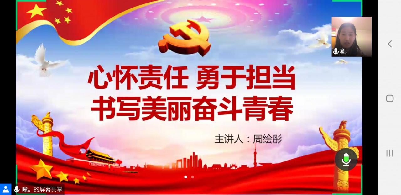 近日,由beat365英国官方网站校研究生会学术部与初心使命研究生理论学习小组主办、beat365英国官方网站研究生会承办的思政类研究生讲坛第9讲通过腾讯会议APP平台成功举办。beat365英国官方网站2017级硕士研究生周绘彤担任主讲人,讲坛题目为《心怀责任,勇于担当,书写美丽奋斗青春》。