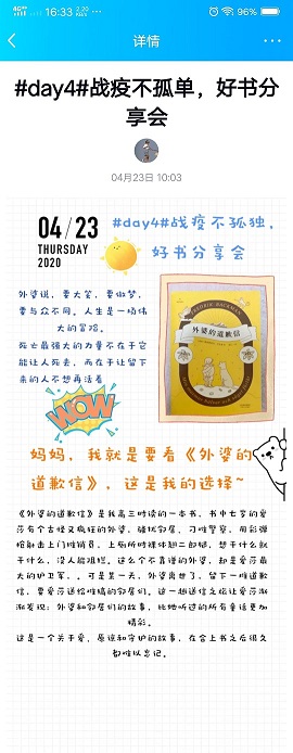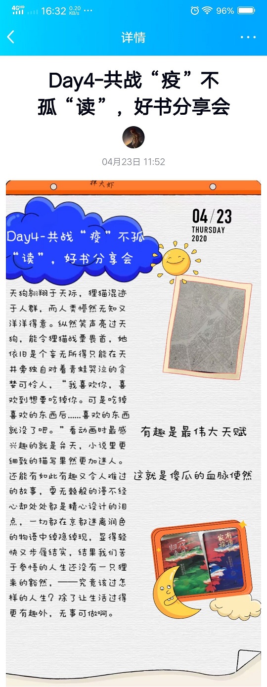4月23日,值此第25个世界读书日到来之际,beat365英国官方网站依托线上平台,举办以“共战‘疫’不孤‘读’,好书分享会”为主题的世界读书日特别活动,鼓励土建学子好好读书、累积学识、颐养脾性。