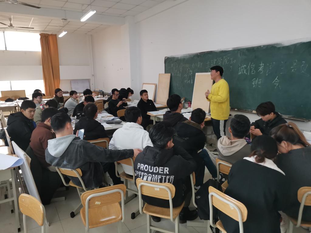 会上,各班级组织同学们学习了《刑法修正案(九)》、《beat365英国官方网站学生违纪处分办法》、《beat365英国官方网站本科学生学籍管理实施细则》等相关内容,认真学习了学生手册《beat365英国官方网站考试违规认定及处理办法》以及《beat365英国官方网站考场规则》等规章制度,讲解了诚信应考的具体内容,提醒大家要正确对待考场纪律。通过已有的考试违纪案例,告诫同学们不要以身试法,违纪违规,并提醒大家带好考试所需有效证件及文具用品。会后,全体同学签订了诚信考试承诺书。