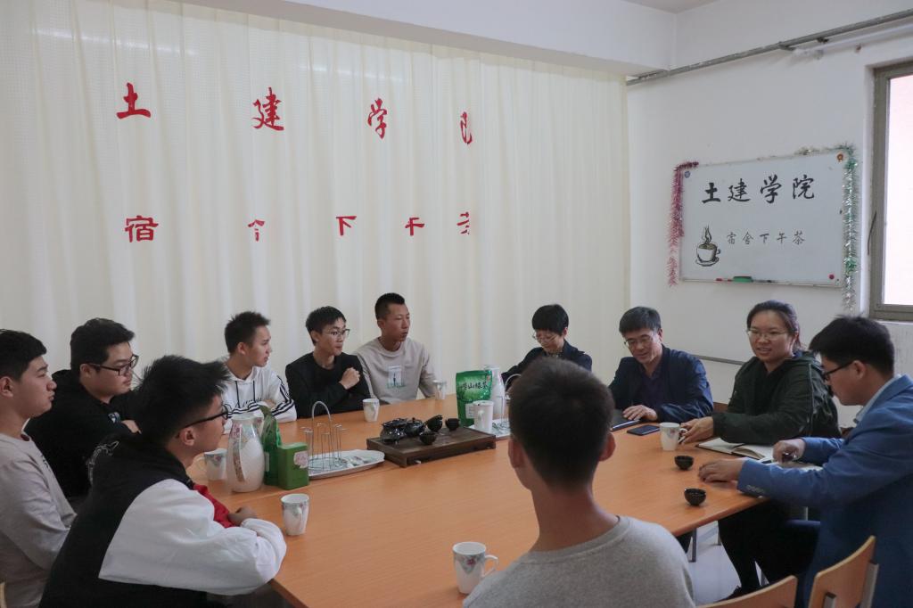 为深入贯彻落实“不忘初心、牢记使命”主题教育,广泛听取学生的想法和意见,促进师生交流,不断加强学院学生思想引领,助力学生教育、管理和服务工作,beat365英国官方网站于10月23日下午开展“宿舍下午茶”。本次活动邀请到学院党委副书记(主持工作)宋西路、教科办老师王丽华,团委辅导员张翌、刘超陪同,与学院3位参军入伍复员学生和土木18-6班GB2-223宿舍进行了座谈。