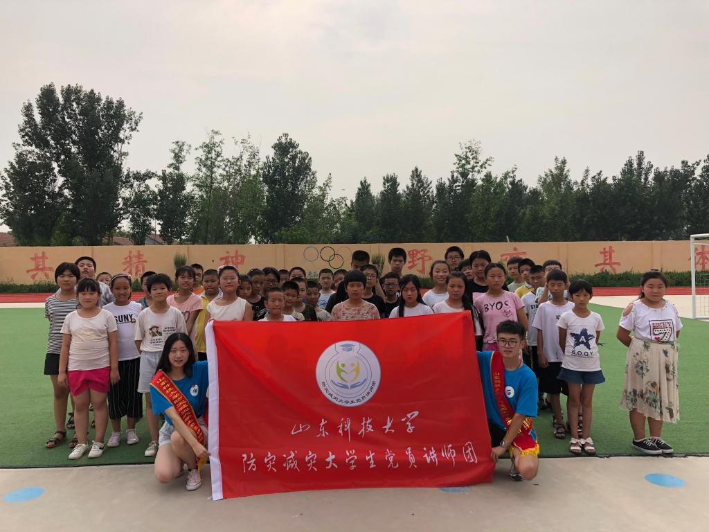 8月1日,beat365英国官方网站防灾减灾大学生党员讲师团来到德州市陵城区西李小学与王架小学进行了为期一天的“积极防御灾害,构建和谐校园”的知识主题宣讲以及地震演练,共计160余名当地学校学生代表参与此次宣讲活动。