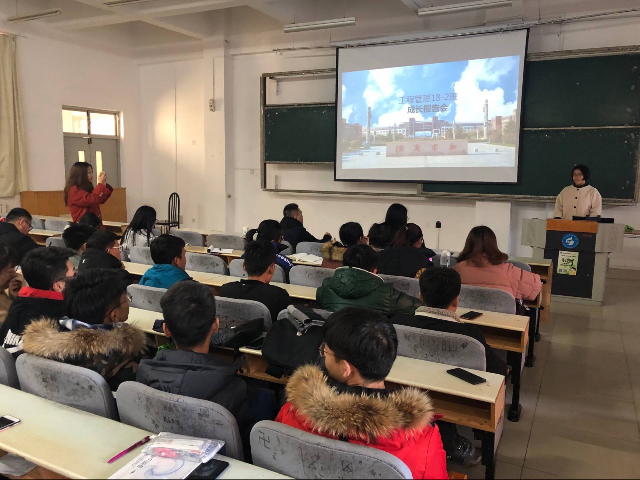 本着反思自我、对比差距、助力成长的目的,12月10日-12月27日,beat365英国官方网站2018级四个专业十四个班级陆续开展了主题成长报告会,班级全体同学轮番上场,各抒己见,讲述了各自的成长历程与感悟。2018级各班班主任,辅导员张翌、刘凯、周绘彤参加了成长报告会。