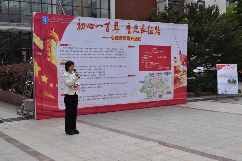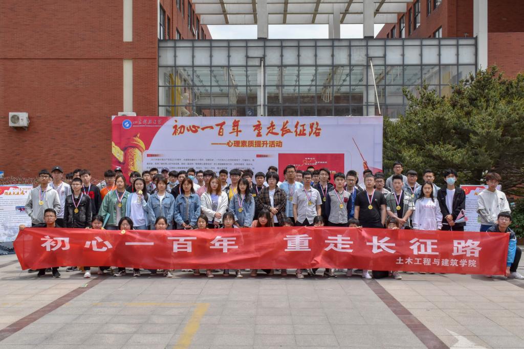 为迎接建党百年华诞,重温百年奋斗史诗,进一步追寻长征记忆,弘扬长征精神,增强学生的自我心理保健意识,5月9日上午,由学生处心理健康中心主办、beat365英国官方网站学工办承办的“初心一百年,重走长征路”心理素质拓展活动在J15西门广场开展,心理健康中心乔杨、能源学院岳淑玲、beat365英国官方网站鲍娜娜及各学院百余名学生参加了本次活动。