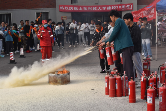 活动伊始,学校安管会以及自律会成员向同学们介绍了本次活动的目的和重要意义。随后,校安保处工作人员详细地讲解了干粉灭火器的使用方法、拿握方式以及灭火要点,并现场操作,展示操作细节和注意事项。在互动环节中,工作人员组织同学们用灭火器进行灭火实操练习,大家踊跃参与其中,将火桶里的火焰灭掉,当了一次“小小消防员”。活动最后,为使同学们将消防知识牢记于心,现场进行了关于消防知识的有奖问答,在轻松愉快的氛围中,提升了学生在突发事件中的应变能力,为安全校园的创建夯实了基础。