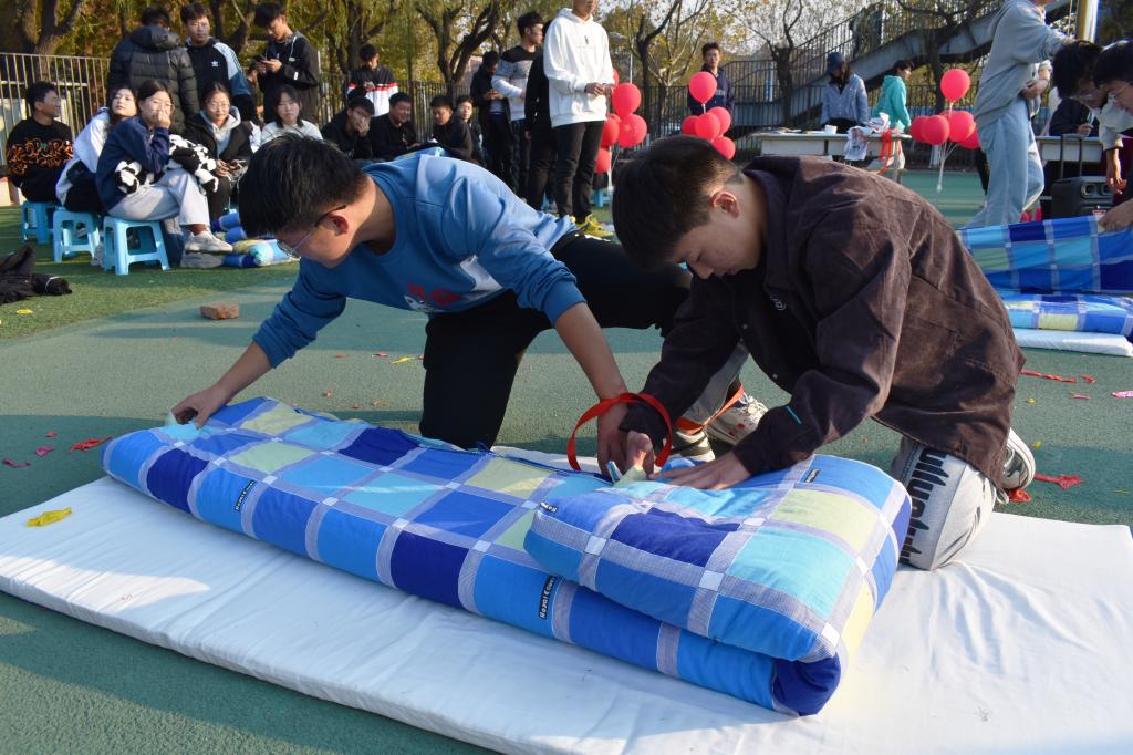 叠军被比赛是宿舍文化月活动的第一个比赛项目,此次叠军被比赛包括四个环节:气球大爆炸、占领阵地、叠叠不休、踩踩叠叠。为增加观众的参与感与积极度,比赛过程插入了中场游戏环节,亲友团参与游戏,游戏获奖者可为本队伍进行额度加分。随后,第三、四轮比赛依次进行,比赛仍以叠军被为中心,但在叠军被前增加了趣味环节,各个环节都极大的激发了同学们的积极性与参与感。每轮比赛结束评委进行一轮打分,最终名次以三次总分为标准,由各位嘉宾对获奖队伍进行颁奖。经过三轮激烈比拼,获得一等奖的是建筑学21-3班,获得二等奖的是土木类21-5班、建筑学21-1班,获得三等奖的是土木类21-6班、土木类21-11班、土木类21-7班。