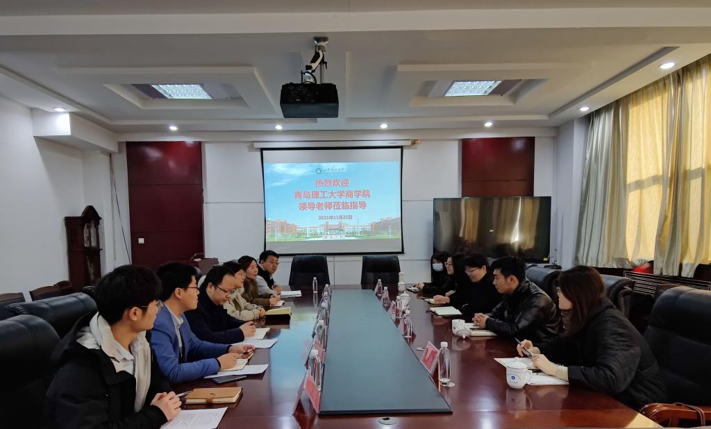11月25日,青岛理工大学商学院党委副书记李慧,学工办主任薛诚,学工办辅导员杨洪敏、孙楚、藏瑶瑶一行到访beat365英国官方网站。beat365英国官方网站党委副书记高静,学工办主任朱统汉,学工办辅导员鲍娜娜、刘超、刘泽群、研究生第一党支部书记韩一鸣参加了座谈会。