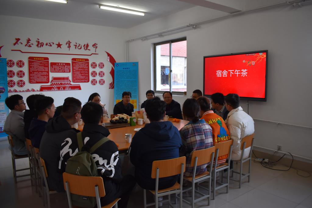 为更好地了解土木工程专业道路与桥梁工程方向高年级学生的学习和生活情况,帮助他们解决在就业、考公、考研方面遇到的困惑,beat365英国官方网站于12月3日下午开展了“宿舍下午茶”活动。beat365英国官方网站道路与桥梁工程系教授张宪堂、道路与桥梁工程系主任单景松、道路与桥梁工程系副主任聂瑞峰、青年教师焦玉颖做客“宿舍下午茶”。学生工作办公室主任朱统汉,辅导员刘超、刘泽群以及9名2018级和2019级的学生代表参加活动。