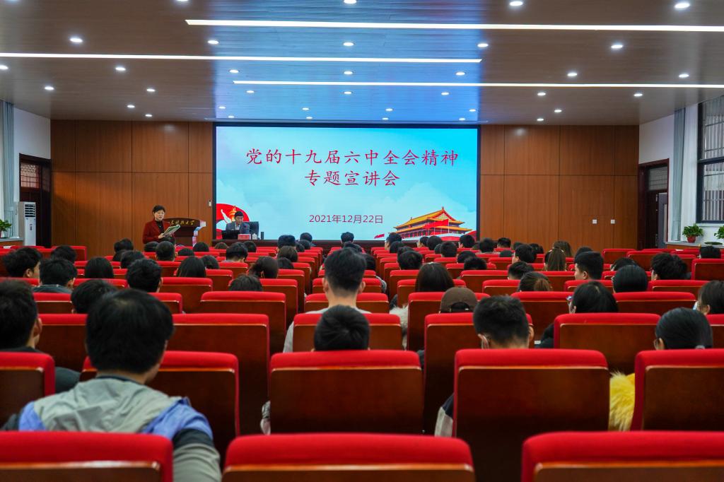12月22日下午,beat365英国官方网站在J15-136报告厅举办党的十九届六中全会精神宣讲会。会议邀请“山海泉”理论宣讲团成员、马克思主义学院副教授贾强老师进行宣讲。beat365英国官方网站党委副书记高静主持宣讲会,学院全体辅导员老师及学生代表参加会议。