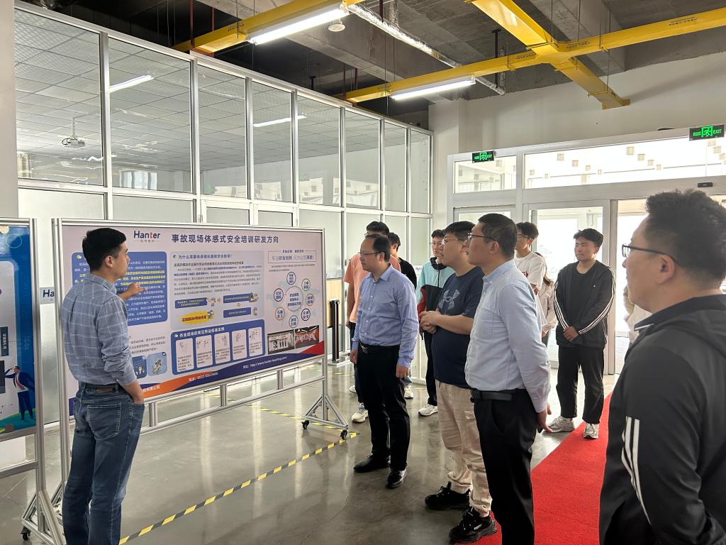 参观期间,青岛航特教研科技有限公司总经理李自才详细介绍了近年来公司专注于职业安全教育领域产品研发和教育教学资源服务,在服务全国高校安全教育、企业职业安全素质教育培训等方面所做的一系列创新性工作。随后,李自才带领大家参观了主题警示、典型事故警示、家居安全、青少年安全、工厂安全、建筑安全、职业卫生、交通安全和消防安全等展区,并进行了细致的讲解。此外,师生还通过实景模拟、互动体验,直观感受一些触目惊心的安全事故,并学习了电梯失控自救、地铁应急逃生、家庭安全绳索逃生、心肺复苏等基本常识,既丰富了师生的感官认识,也从思想深处增强了安全意识,提高了应急自救能力。
